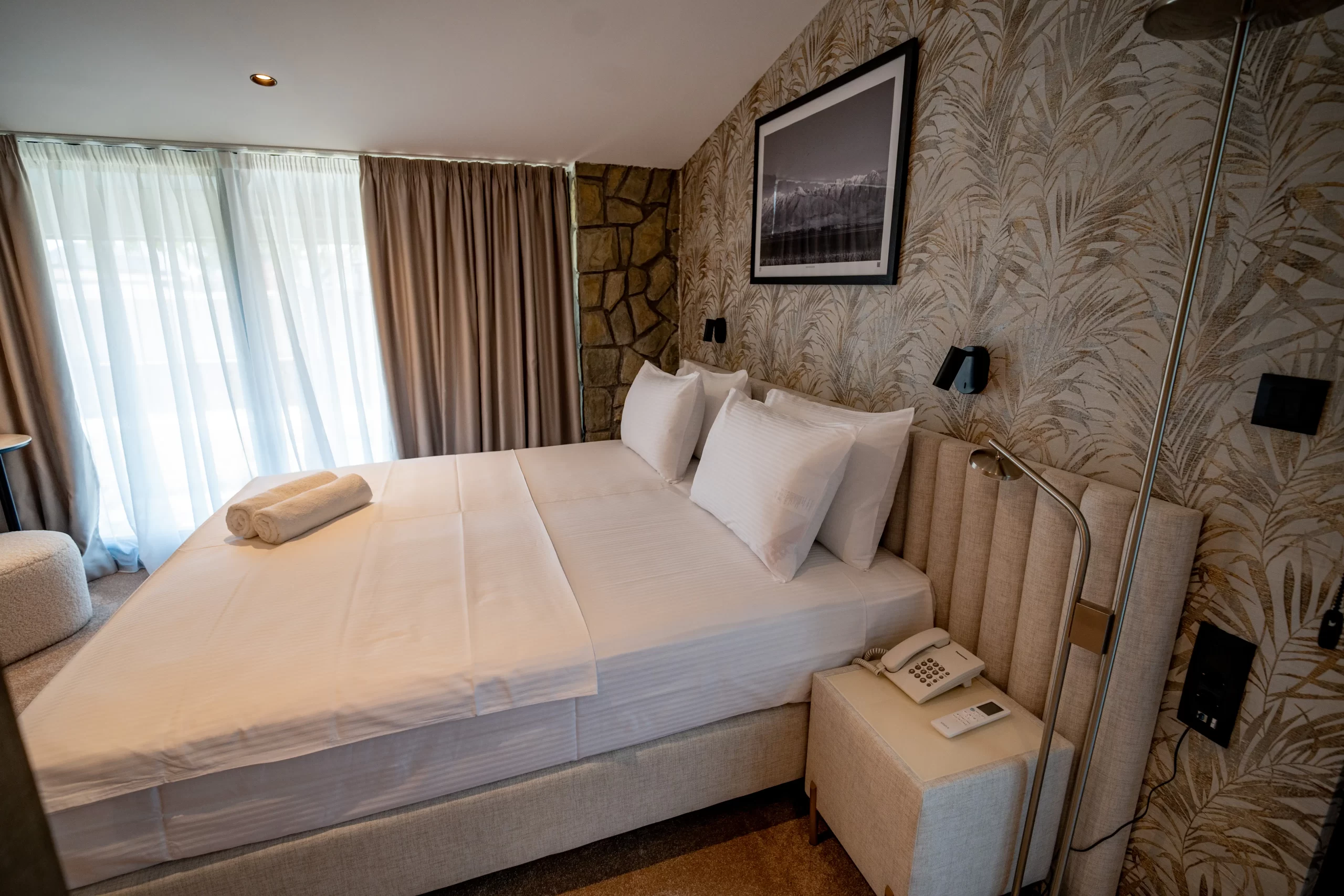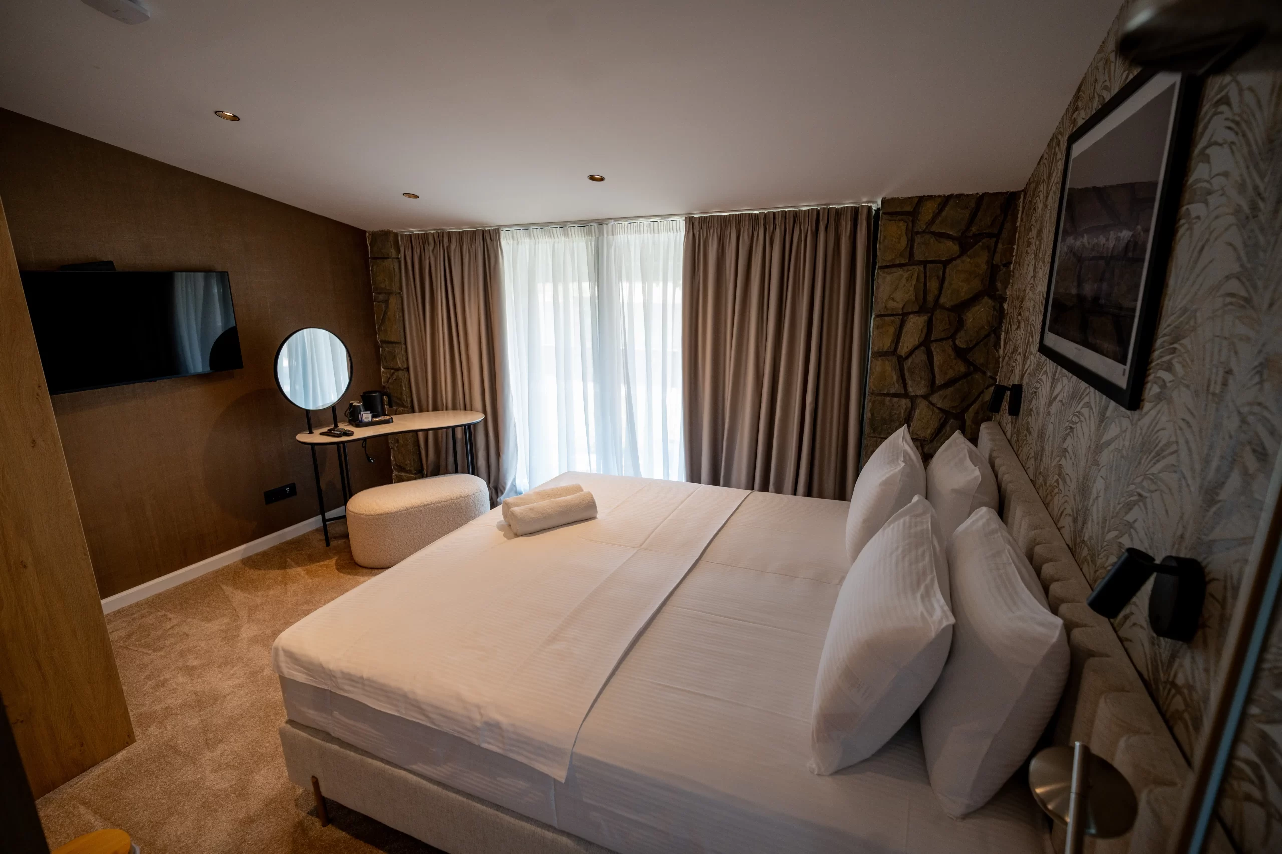 Kroz fotografije možete istražiti naše moderno opremljene dvokrevetne sobe, prostrane junior i deluxe apartmane, kao i praktične studio apartmane koji kombinuju udobnost i funkcionalnost. Posebno mjesto zauzima naš restoran, koji nudi pažljivo pripremljena jela i prijatan ambijent, kao i usluga doručka koja upotpunjuje doživljaj boravka. Za opuštanje i uživanje na otvorenom, tu je naš bazen, dok Depandans – Garden Rooms pruža mir i privatnost u zelenom okruženju.